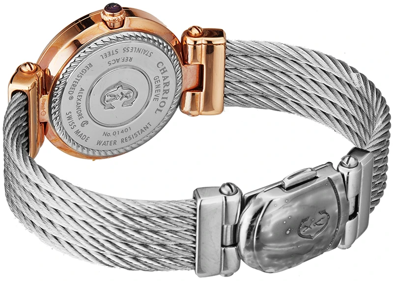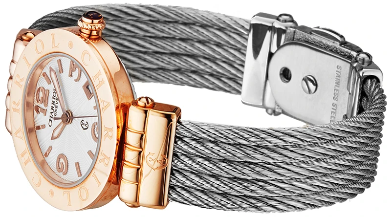 | Bezel Material | Polished rose gold PVD coated stainless steel, 'CHARRIOL' engraved |