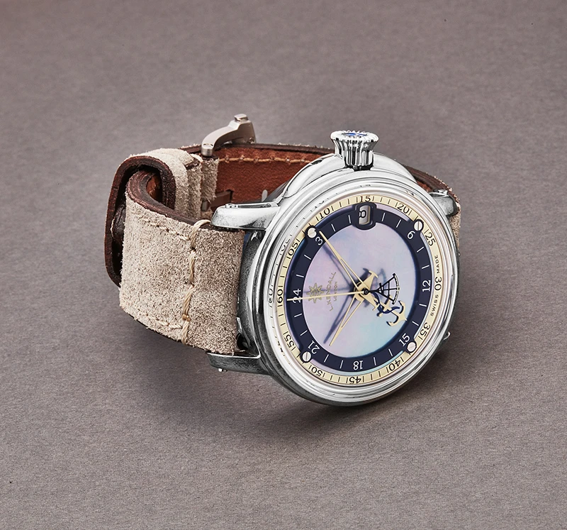 | Dial Color | Blue mother of pearl, with a blue and cream frame |