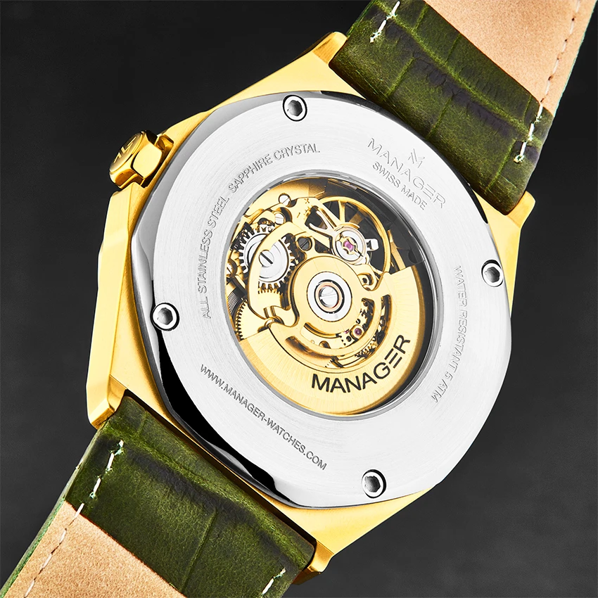 | Watch Bracelet / Strap Material | Green Leather |