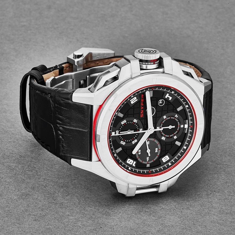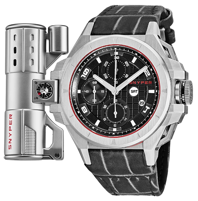 | Dial Color | Black Checkerboard Dial With Snyper In Red At The 2 o'clock Position, Silver Tone Luminescent Hands, Luminescent Arabic Numerals, Black Guilloche Small Seconds Sub Dial At The 9 o'clock Position |