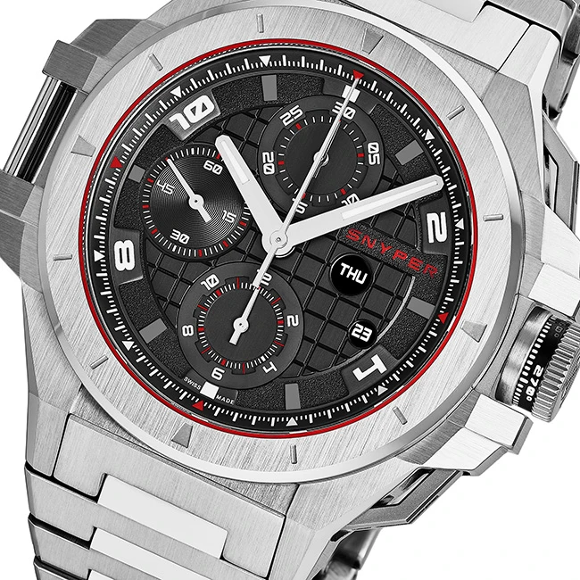 | Dial Color | Black Checkerboard Dial With Snyper In Red At The 2 o'clock Position, Silver Tone Luminescent Hands, Luminescent Arabic Numerals, Black Guilloche Small Seconds Sub Dial At The 9 o'clock Position |
