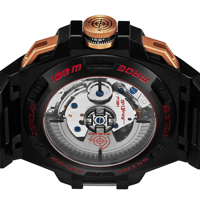 | Crown Material | Screw Down Crown With 360 Degree Scale And Black Lacquered Target Logo |