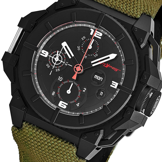 | Dial Color | Black Dial With Snyper Logo At The 2 o'clock Position, White Luminescent Hands and Arabic Numerals, Small Seconds Sub Dial With White 'Target' Symbol At The 9 o'clock Position |