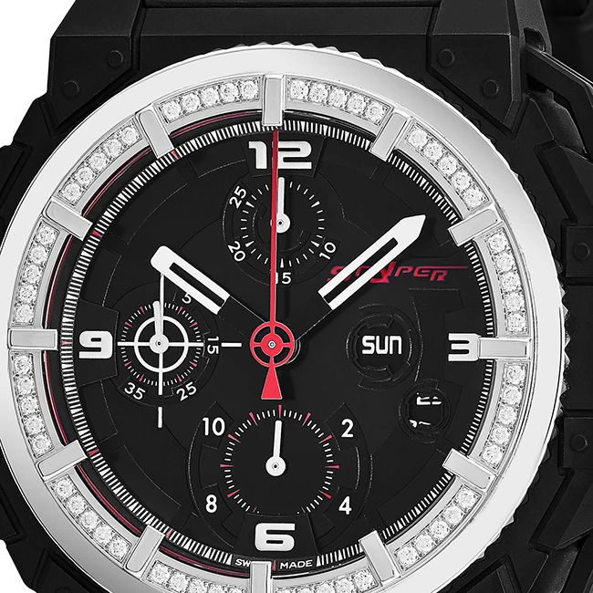 | Dial Color | Black Dial With Snyper Logo At The 2 o'clock Position, White luminescent Hands And Arabic Numerals, Small Seconds Sub Dial With White Target Symbol At The 9 o'clock Position |